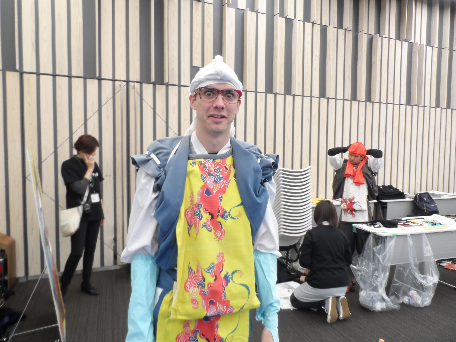 Earlier in the week, my friend had posted about an event she was going to take part in. I messaged her and asked if I could join. The next day I received confirmation that I could join. The event took place in Ikebukuro and was supposed to happen in the park. They had a really nice set up and they rehearsed for 2 hours outside. Then we went inside to get dressed. At the time we were supposed to go outside, it started to rain. The rain wouldn't go away, so the performance had to be moved indoors. It was such a shame because last year they had to do it indoors as well because of a typhoon and they had practiced 3 months for the performance. Since the festival had to be done indoors, they weren't able to have such a big audience. (Plus the rain had stopped by the time the performance was finished and we changed out of the traditional clothes). The MC of the show was a Japanese comedian, Kota Ishii part of the comedian group Yarusenasu. He was super nice and he was more than willing to wear my glasses. He even helped me get the main actor, Manzo Nomura, to wear my glasses as well. It was so great to watch the traditional dance and so interesting to see that they also incorporated cos play people. Everyone was so nice and friendly and I am so happy that I was able to be part of the festival. (Plus I got an event shirt for participating. That was pretty cool!)
