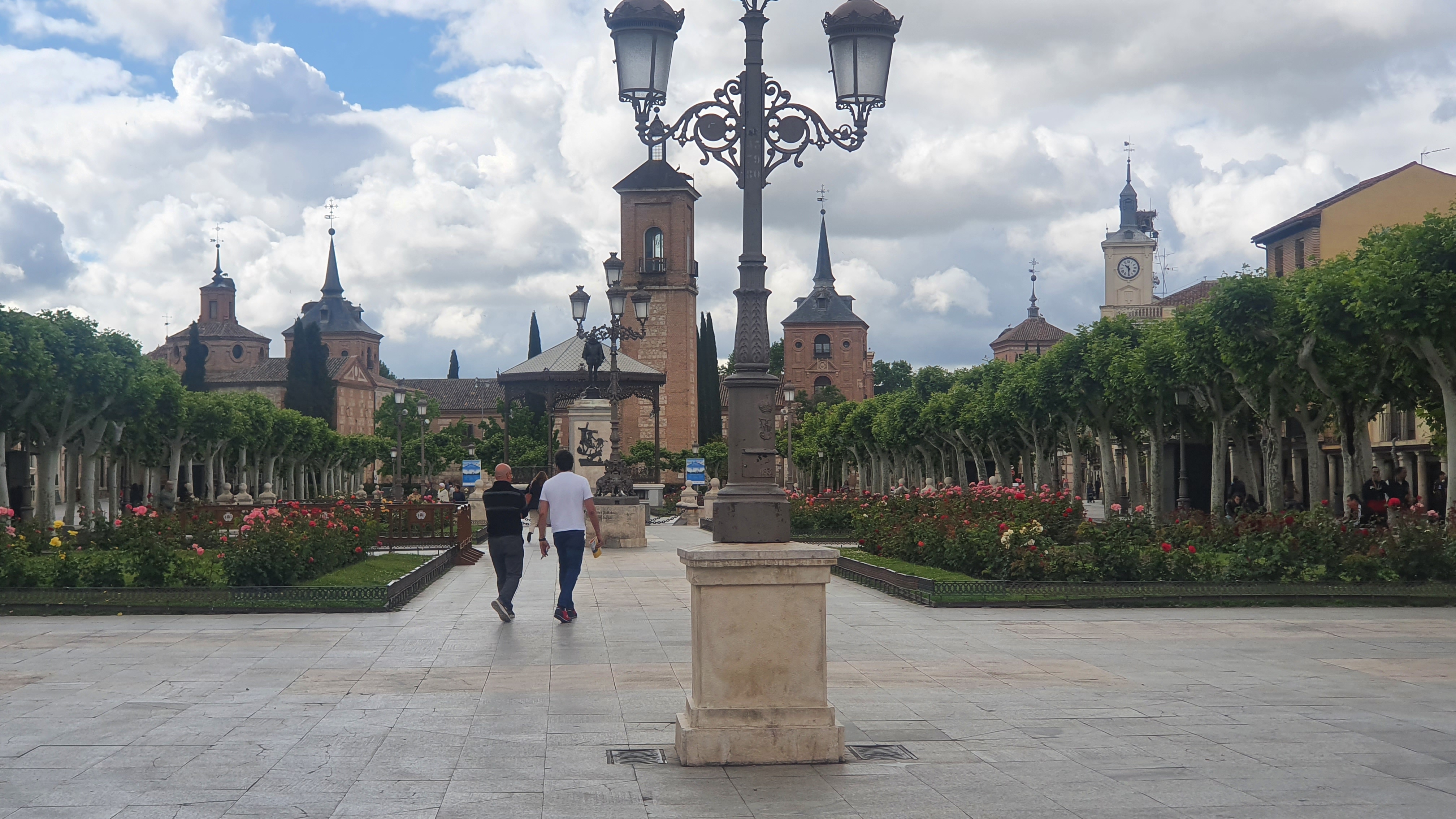 On Thursday night, Leoš's friend and his friend's girlfriend came over to spend the night at our place. The next day we had to wake up at 3:30am to get a taxi and get to the airport. When we all arrived to Madrid we took another taxi to our hotel. It was too early to check in, so we dropped off our stuff and headed to get breakfast. We had the typical Spanish breakfast of churros with chocolate. The cups of chocolate were way too big. It was such a sugar rush. Then we walked around the city, Alcala de Henares. It was quite nice and beautiful. Then we took a train to get into Madrid. The city was busier and full of people. We walked to a beautiful park in the center. Then we went for tapas in a market. We walked around the main square and then needed to head back to the hotel to get a bit of rest before the party. The future bride and groom set up a party so some of us could meet each other before the wedding. The drinks and food were flowing. It was a fun night, but it was so tiring because we had woken up at 3:30am that day. I think we were up for 21 hours total. It was a great busy start to the weekend.