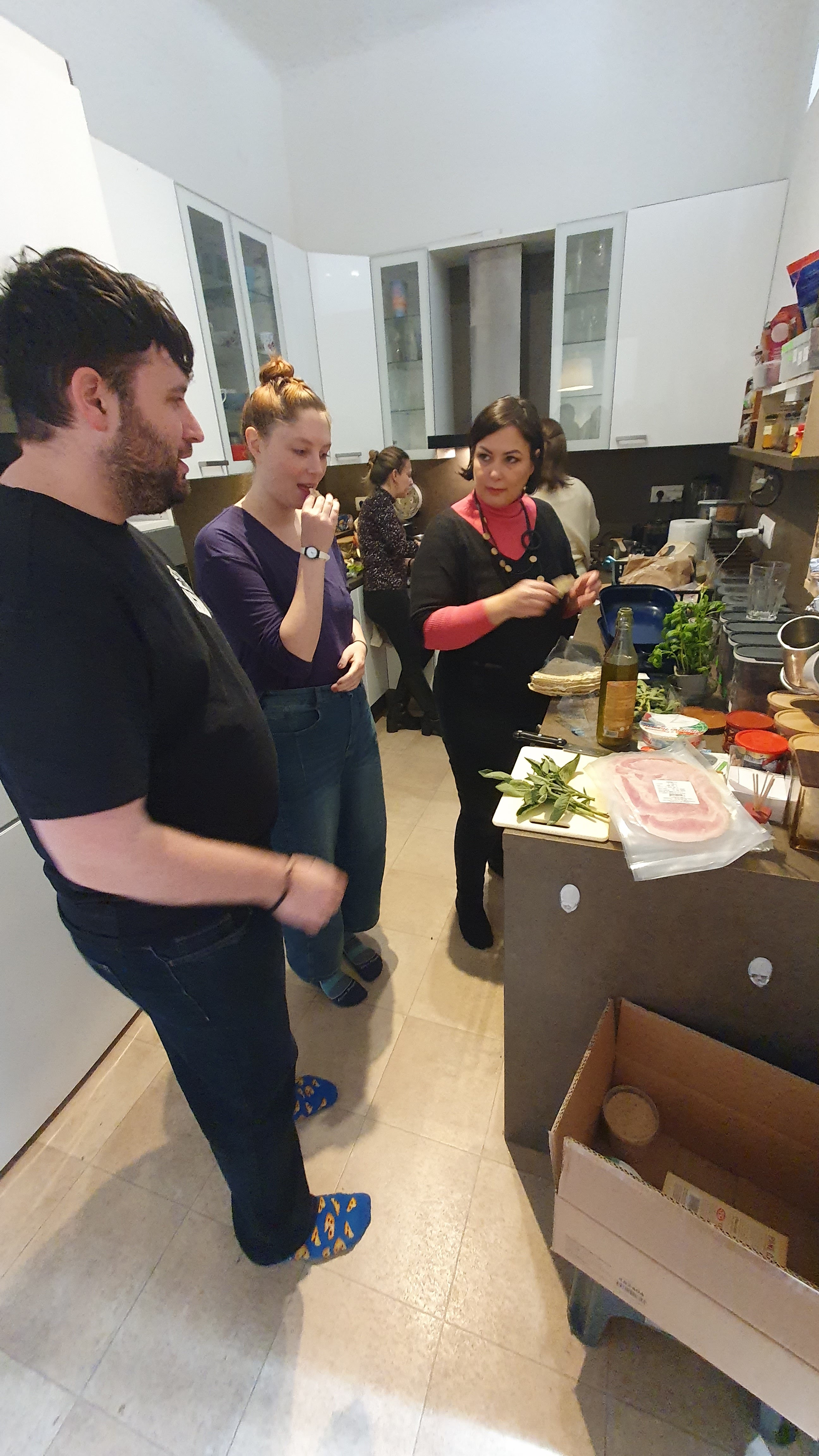 This month we had an Italian Cooking Class. The chef was Stefania Lenzotti, the owner of an amazing Italian food shop: La Dispensa Italiana. We learned so much about the ingredients and techniques on how to prepare the dishes. When it came to knowledge, one fact that surprised everyone is the fact that when olives come into Europe and they sit on the dock for 2 weeks, they can be considered "European olives". So, its always important to check olive oils when you buy them. If they say made by "European Olives" don't buy the oil. Plus olive oil is one of the most counterfeited items. Stefi told us that it was better to buy sunflower oil than cheap olive oil. When it came to cooking, I think all of us were so surprised when we added carrots and celery to the mixture for the bruschetta. It was soooooo good and such a nice surprise for everyone. Stefi did a great job separating people into groups for the dishes and everyone was able to go to the different "stations" and see what they were doing. After the class was finished, Madeline and I went back to her hotel to use of one the perks they give their guests: free entry to the Lesser Town Bridge Tower. Each room could have two people, so even though I didn't stay with her, I was able to go with her. We were the only ones in the tower for 10-15 minutes. It was really cool. First we went to the first deck and then we had to walk up several flights of stairs (the last set was really narrow and steep) to get to the top. The views were amazing and I couldn't believe that I hadn't been there before. It was such a great day!!